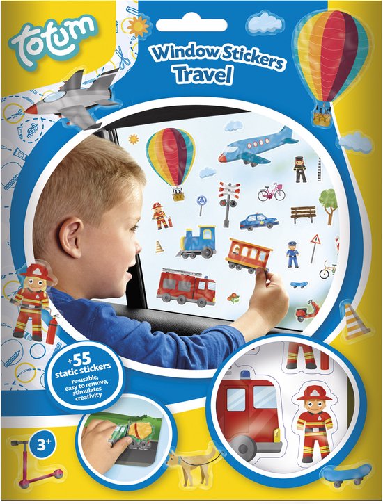 Totum traffic window stickers. With this fun reusable window sticker set, you can go anywhere. Are you taking the car, train, or plane?